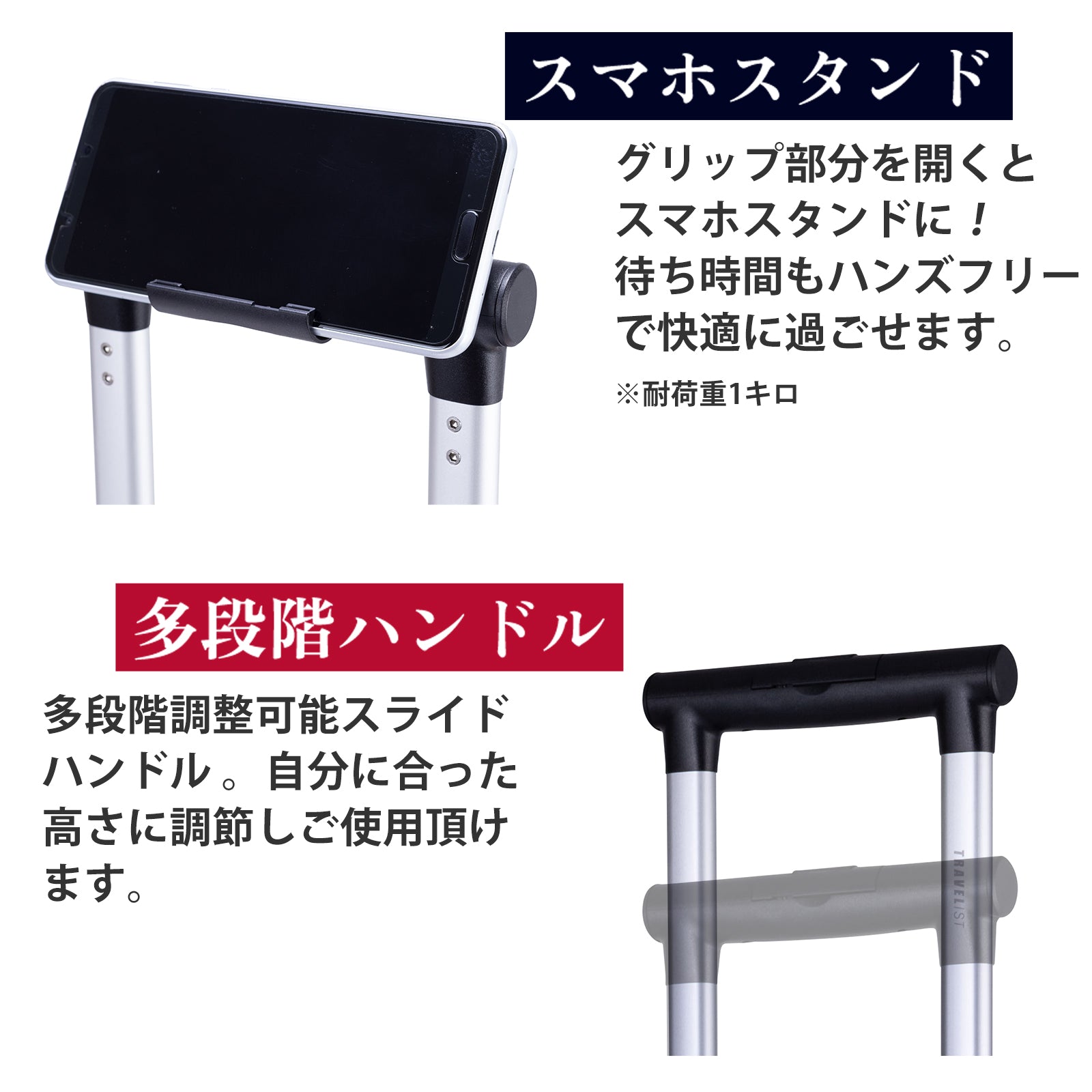 スライドハンドルの両サイド、側足が荷物を掛けられるフックになっています。