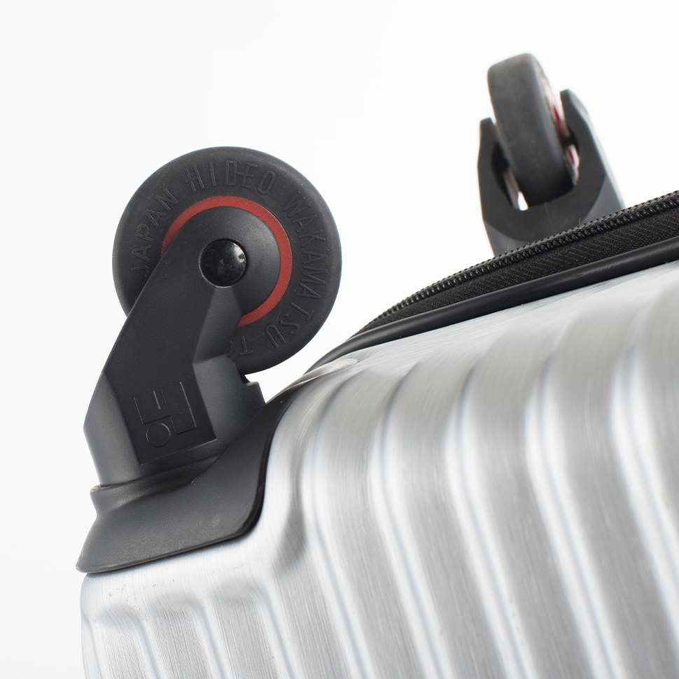 静かで丈夫で走行性に優れるキャスター。荷物を入れて硬い凹凸のアスファルトを走行した際、
